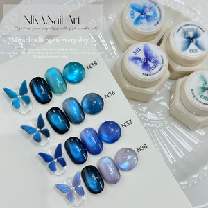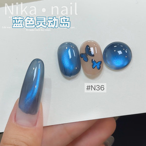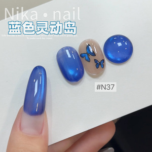 ブルーキャットアイマニキュア、人気の色ブルーライトガラスビーズキャットアイジェルネイルサロン用