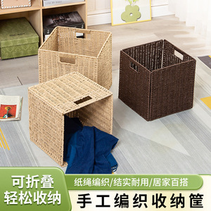 可折叠仿藤收纳筐简约脏衣内衣物收纳篮玩具零食储物篮编织收纳盒
