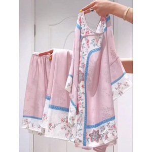 新しい中国風の花柄ジャカードパジャマ、女性用、秋スタイル、ゆったりとした大きいサイズ、屋外で着用可能、ホームウェアセット