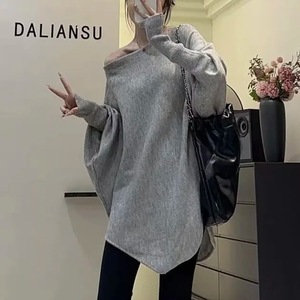 慵懒风V领针织衫毛衣外套2025春秋新款不规则设计感蝙蝠袖女上衣