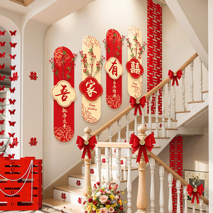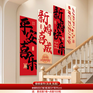 結婚式の階段手すり装飾結婚式の部屋のレイアウトセット女性の幸せな言葉の背景壁ラテアート結婚式用品