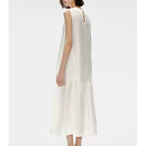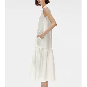 [BE注文] 2025夏新作気質シンプルな白いベストドレスレディースラウンドネックルーズプルオーバードレス