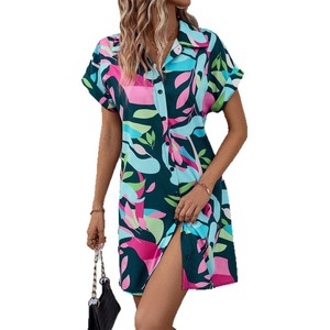 ヨーロッパとアメリカのクロスボーダーアマゾンファッション新しい半袖フラワープリントドレス2025夏エレガントなショートスカート