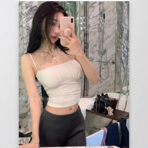 10124 # 夏の新作 Pure Desire ショートプリーツサスペンダーウエスト痩身インナーとアウターのオールインワン胸パッド付き