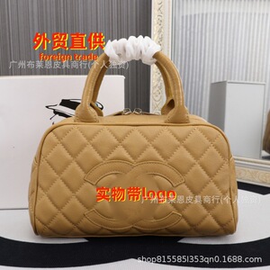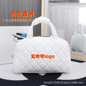 直供跨境复古小香风Logo保龄球包中古时尚百搭大容量手提单肩女包