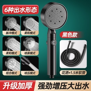 [アップグレードされたオブシディアンブラック] - 5速大型水出力スーパーチャージシャワー + 1.5mホース + ブラケット