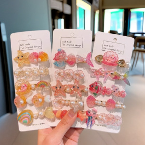 新しい子供のかわいいオーシャンシリーズの女の子用ヘアピン、前髪クリップ、ヘアピン、髪を傷つけない女の子用サイドクリップ、ヘッドギア