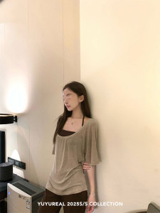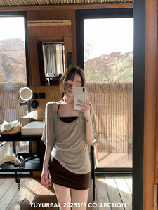 YUYUREAL ソフトシリーズ Tシャツ フェミニン Uネック 半袖 夏新作 五分袖 ホルターネック 胸パッドベスト