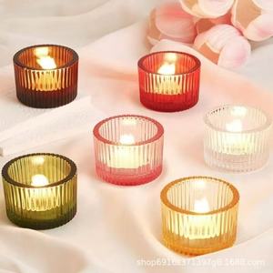 アロマセラピーキャンドルガラスストライプティーライトカップ光と影ロマンチックなキャンドルライトディナーホリデーレイアウト燭台カップ空のカップ