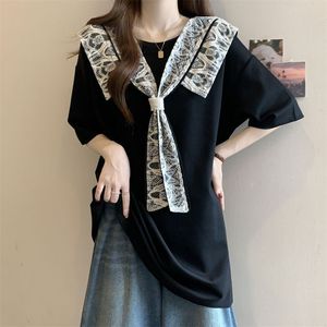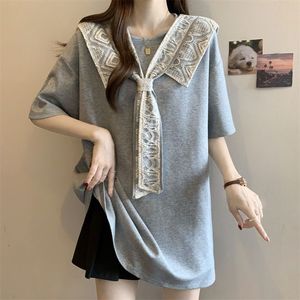 大きいサイズの西洋風レースステッチ右肩半袖Tシャツ女性用夏の新しいスタイルファットmmルーズスリミングミドル丈トップ
