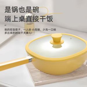 インターネットセレブの新しい四角い中華鍋無段階チタンノンスティック中華鍋家庭用軽量小型中華鍋ミルクイエロー食品サプリメントポット卸売