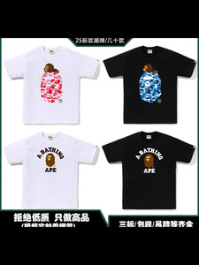 APE Ape トレンドブランド 外国貿易 ヘビーウェイト ピュアコットン ラウンドプリント ユニセックス ゆったり プレミアム 半袖 Tシャツ 25SS