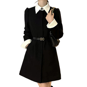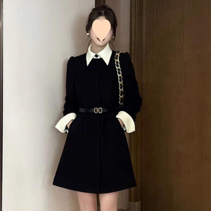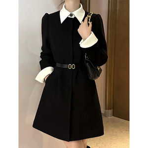 高级感时尚小香风裙子黑色假两件连衣裙2025秋季新款气质小黑裙
