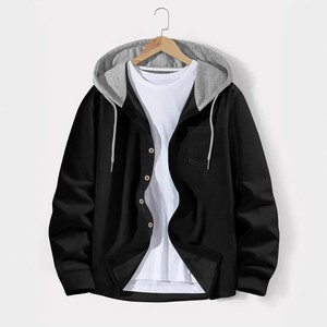 2025 Amazon wish AliExpress 秋メンズワッフルカラーブロックブレストフード付きカジュアルカーディガンジャケット