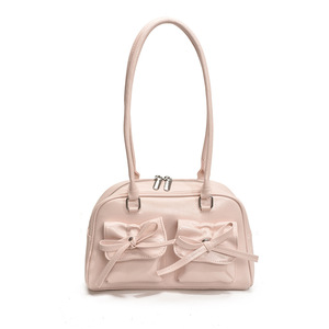 ボウノットボウリングバッグ女性のための 2025 新しいニッチバゲットバッグレトロ大容量ポータブルショルダークロスボディバッグ