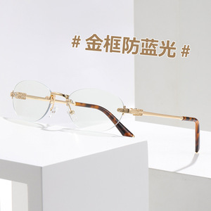 变色无框平光眼镜韩版女士镜框跨境潮流防蓝光平光眼镜架小框眼镜