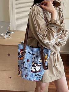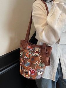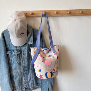 パーソナライズされたプリントニッチカジュアルバケットバッグ 2025 新しい軽量コントラストテクスチャ布ポケットシングルショルダークロスボディバッグ