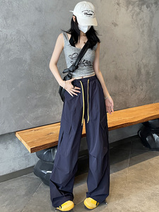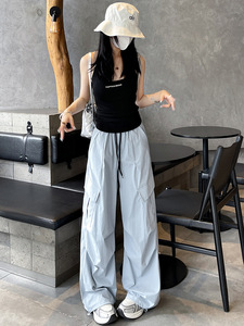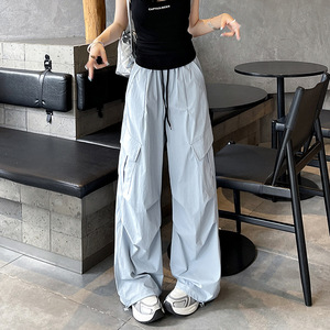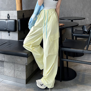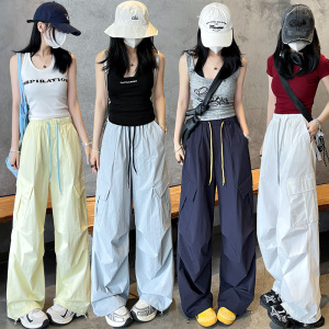ビッグポケット速乾性オーバーオール女性のための 2025 夏薄いキャンディーコントラストカラーアイスシルク空挺部隊アウトドアアメリカンカジュアルスポーツパンツ