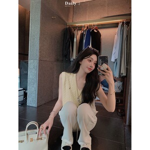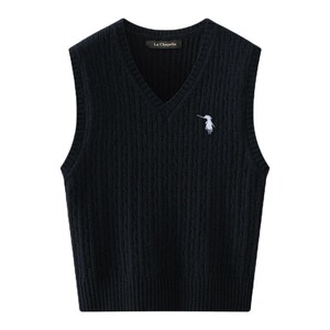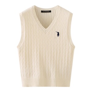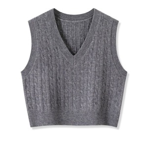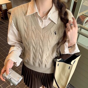 女性用グレーVネック刺繍ニットベスト、小柄な人向けの春と秋のアウターウェア、多用途のルーズレイヤードツイストセーターベスト