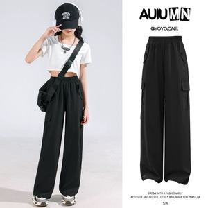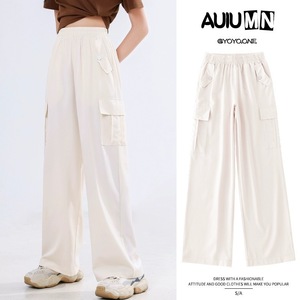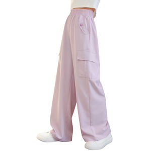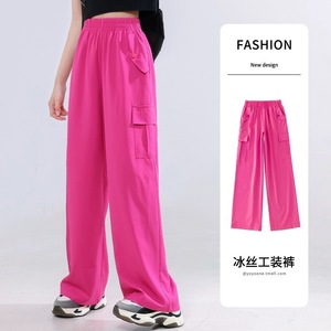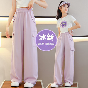 夏の女の子のワイドレッグパンツ子供パンツアイスシルクオーバーオール 2025 新しい防蚊パンツ女の子の夏のズボン