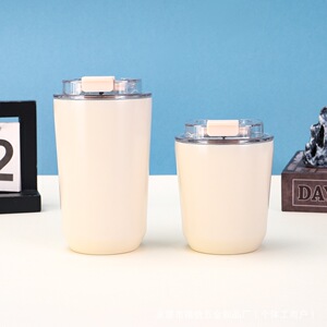 新しい 304 ステンレス鋼魔法瓶カップ、蓋付きのワンクリックオープンコーヒーカップ、シンプルな大容量マグカップバッチ