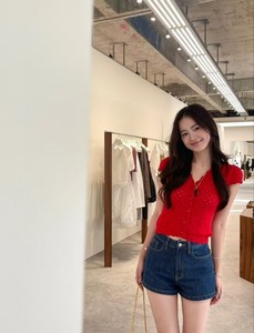 レトロレッドショルダー半袖Tシャツレディース夏スリムスウィートホットガールショートTシャツシックな韓国トップス痩身
