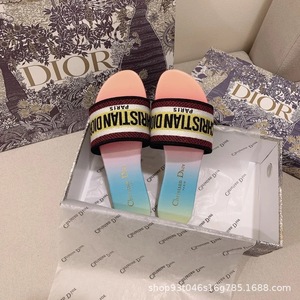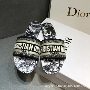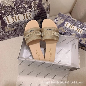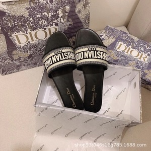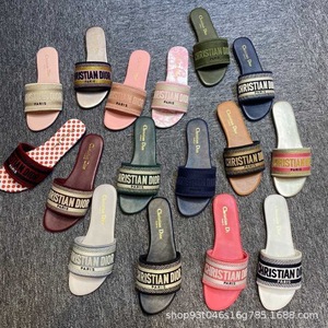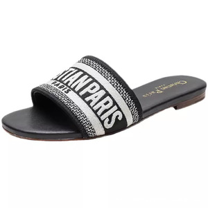 D's 刺繍スリッパ レディース フラットスリッパ 2025 夏新作 レタープリント キャンバス カジュアル 万能 レディース スリッパ