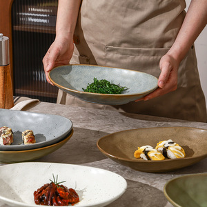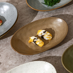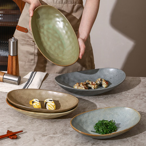 卸売粗い陶器プレートレストラン家庭用魚プレートセラミックロングプレートシンプルな大型楕円形プレート寿司ペストリーデザートプレート