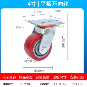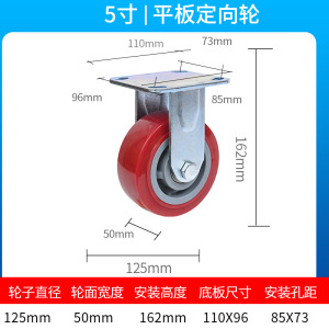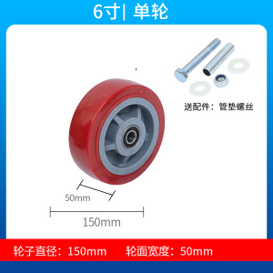 平底重型6寸工业红色聚氨酯PU推车458寸静音耐磨万向轮刹车脚轮子
