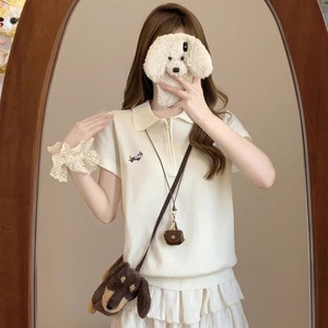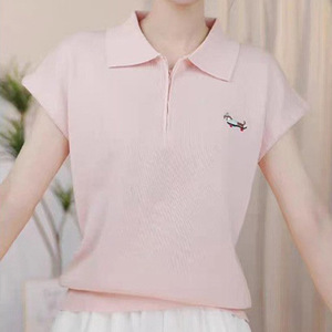 若い甘い女の子のニットポロシャツ半袖、甘くて新鮮でかわいい、高貴な気質、カジュアル、通気性と快適