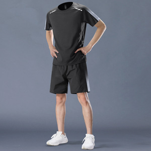 スポーツスーツメンズ速乾性夏ランニング半袖フィットネス服アイスシルク Tシャツショーツバドミントントレーニング服
