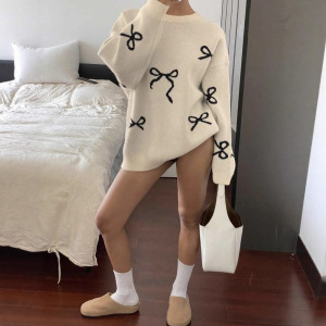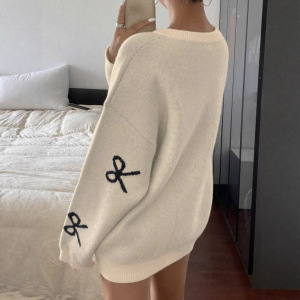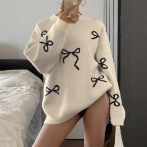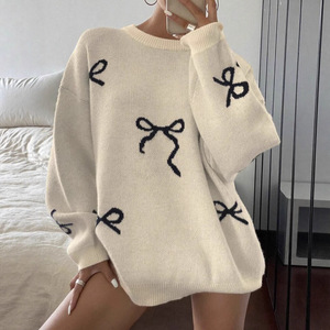 2025 クロスボーダー Amazon レディース カジュアル ルーズ ラウンドネック リボン柄 長袖セーター