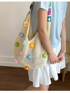 外国貿易大容量中空ニットバッグ女性のための夏 2025 新しい多用途ショルダーショッピングバッグ織トートバッグ