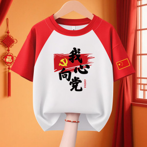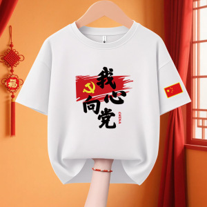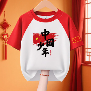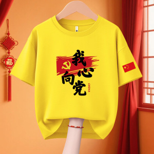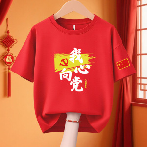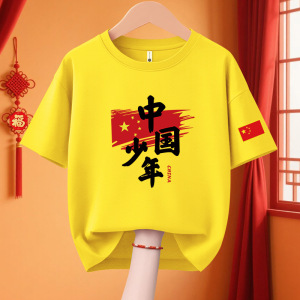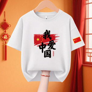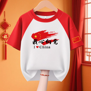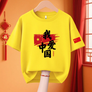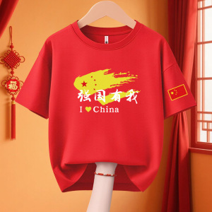 子供愛国 Tシャツクラス制服 11 国慶節子供純綿パフォーマンス活動服私は中国カップル半袖