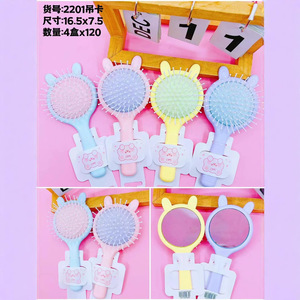 レインボー 2 ドルショップ カラー独立ロールコーム ミラー付き カーリーヘアコーム ブロードライヘア 前髪 ペアヘッド インナーバックル