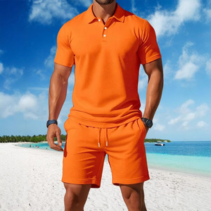 メンズサマービーチスーツ新しい多用途ファッショントレンド半袖ポロシャツショーツスーツカジュアルツーピーススーツ