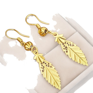 沙金女款叶子耳环长款仿黄金耳坠抖音直播耳饰品送妈妈礼物批发