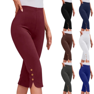 2025亚马逊速卖通弹力七分裤女高腰显瘦大码女装宽松休闲中裤打底