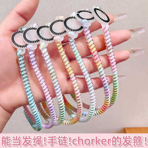 おしゃれな電話コードヘッドバンド、新しいスポーツヘッドバンド、ヘアバンド、高級洗顔ヘッドバンド、ヘアロープブレスレット、兼用帽子