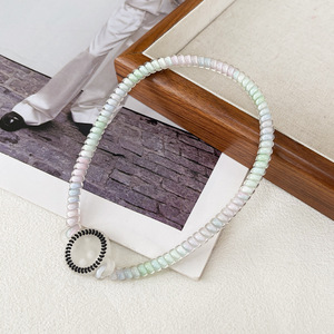 ピンクとグリーンのグラデーション電話コードヘッドバンド