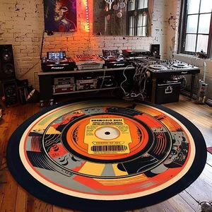 ラウンドレトロレコードクリスタルベルベットフロアマットインベッドルームベッドサイドクッション吸水性と汚れに強い商業ゲームルームフロアマット