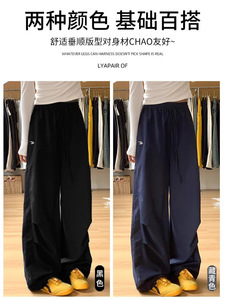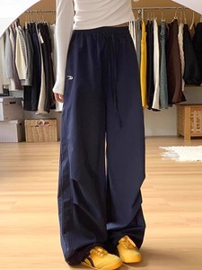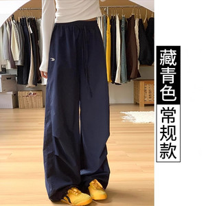 女性用ネイビーブルーオーバーオール2025春夏新作ルーズストレートカジュアル速乾小柄刺繍ワイドレッグパンツ