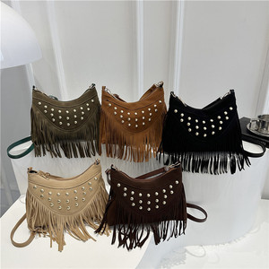 卸売ファッションリベットポータブル小さな正方形バッグレディースバッグ 2025 夏の新スタイルライト高級タッセルショルダーバッグ多用途クロスボディバッグ