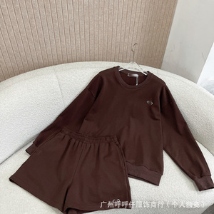 25 夏の新しい怠惰なカジュアルスーツルーズラウンドネックスウェットシャツ + ウエストゴムショーツ女性用