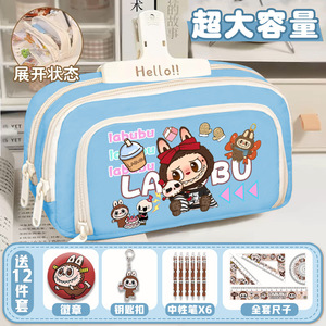 ラブブ鉛筆バッグ漫画高価値文具周辺機器バブルマートLABUBU共同ブランドキャンバス収納筆箱