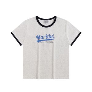 クロスボーダー マリテ 半袖 ハイユンジン同風 ショート スリム ゆったり ホットガール Tシャツ ピュアコットン 右肩 ラグランスリーブ 男女兼用