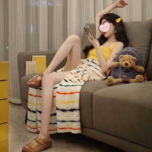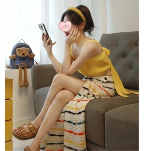 夏のドーパミンウェアスーツ小柄な甘辛ショートキャミソールレディースレインボーストライプスカート2点セット