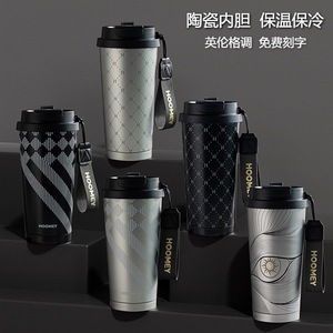 男性用の軽くて豪華な大容量ウォーターカップ、ハイエンドの車載クリエイティブタンブラー、ダブルドリンクコーヒーカップ、316セラミックカスタムカップ