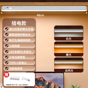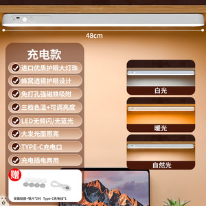 48CM ホワイト充電モデル - 充電とプラグの両用 [タッチスイッチ + 3色温度調光と色調整]
