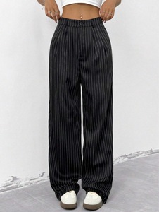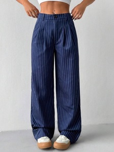 ブルーストライプヨーロッパとアメリカのクロスボーダーカジュアル通勤ルーズワイドレッグカジュアルパンツ